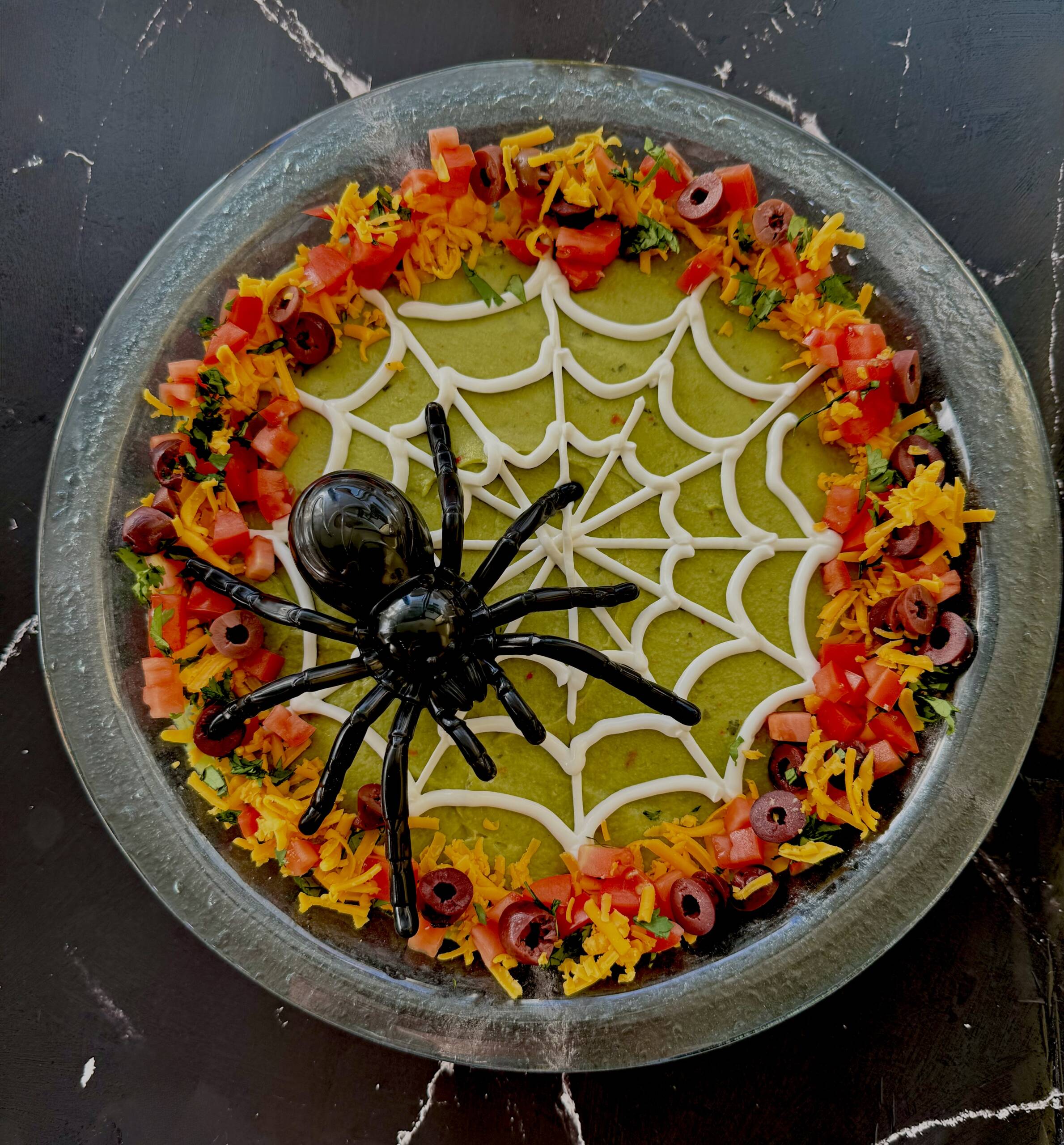 Layers of Guacamole, sour cream, salsa, aged cheddar cheese, black olives, tomatoes and green onions. Served with blue corn tortillas. Serves 6-8 guests.